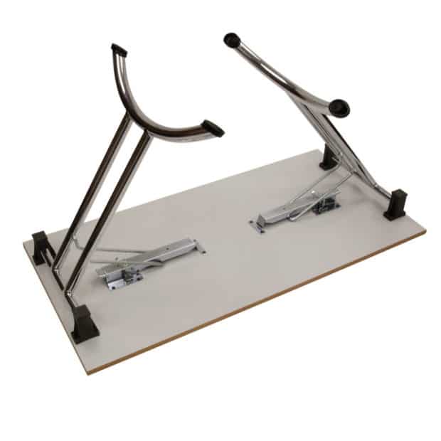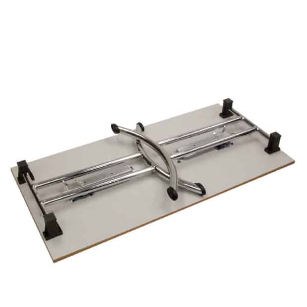 Designed for conference and meeting use, ADV folding table comprises chrome plated steel frame with laminated top in a range of colours.