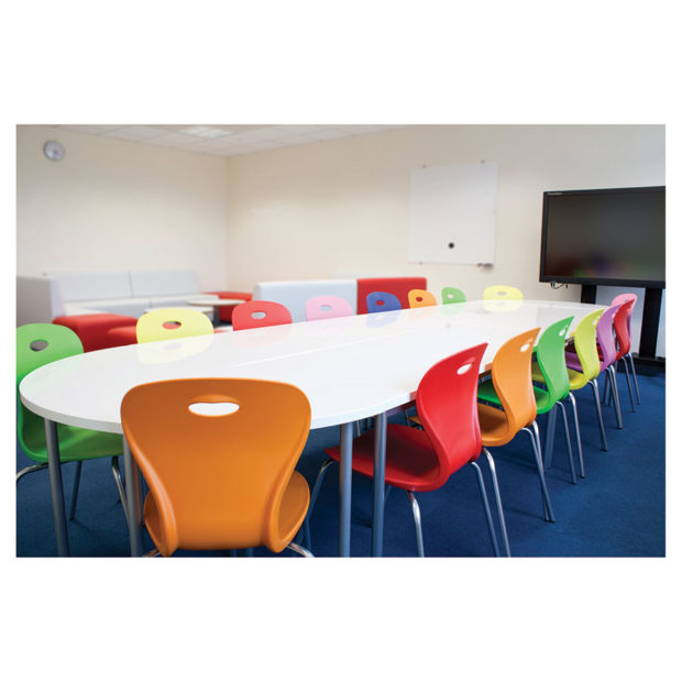 Table top is of 18mm laminated MDF as standard, 25mm board is available on request.  Table surface, board edge and frame are available in a range of colours as required.