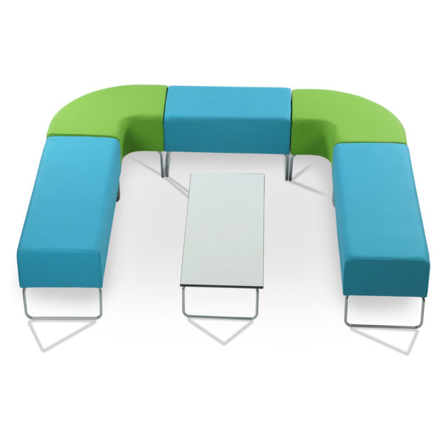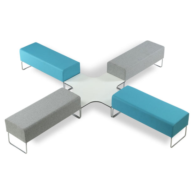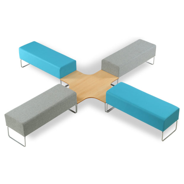 Urban Bench has connecting tables with low upholstered benches and coffee tables. The Urban Benches and connecting tables have been designed to allow customers flexibility in efficient use of space.
